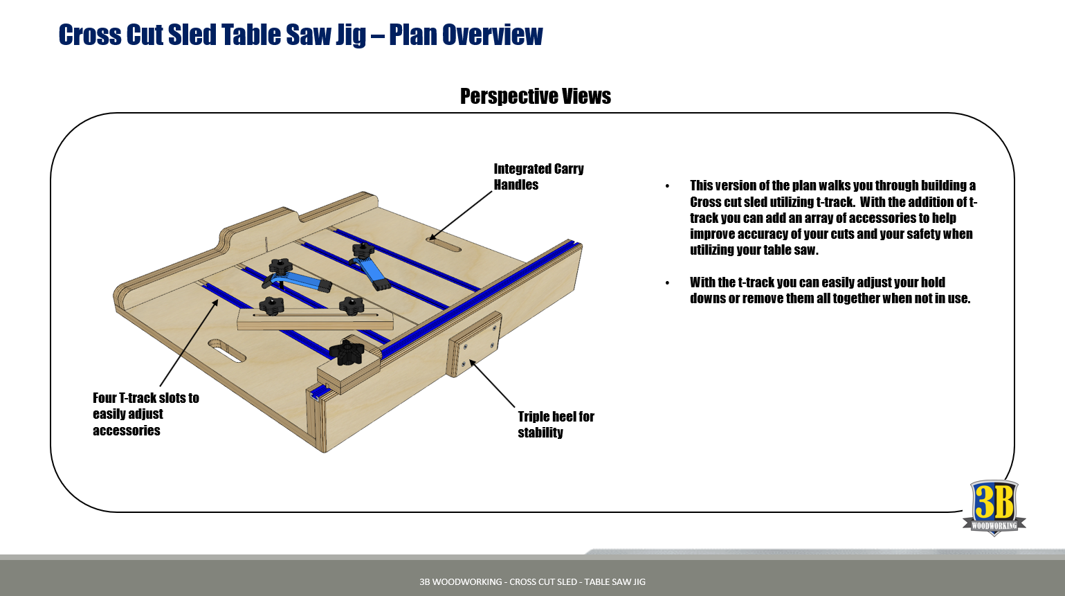 Time to upgrade improve your efficiency with this awesome table saw upgrade. This Crosscut Sled allows you to easily easily make repeatable and accurate cuts with your table saw, while securely holding down materials. With the addition of T-Track accessories, you can add a bunch of functionality to improve your safety while using your table saw. This is one of those projects that after you build it you wonder why you didn’t build it sooner.