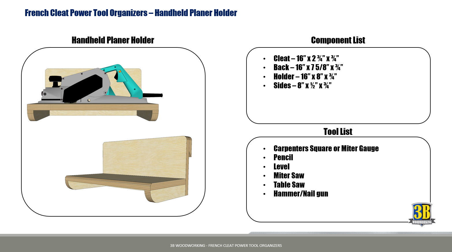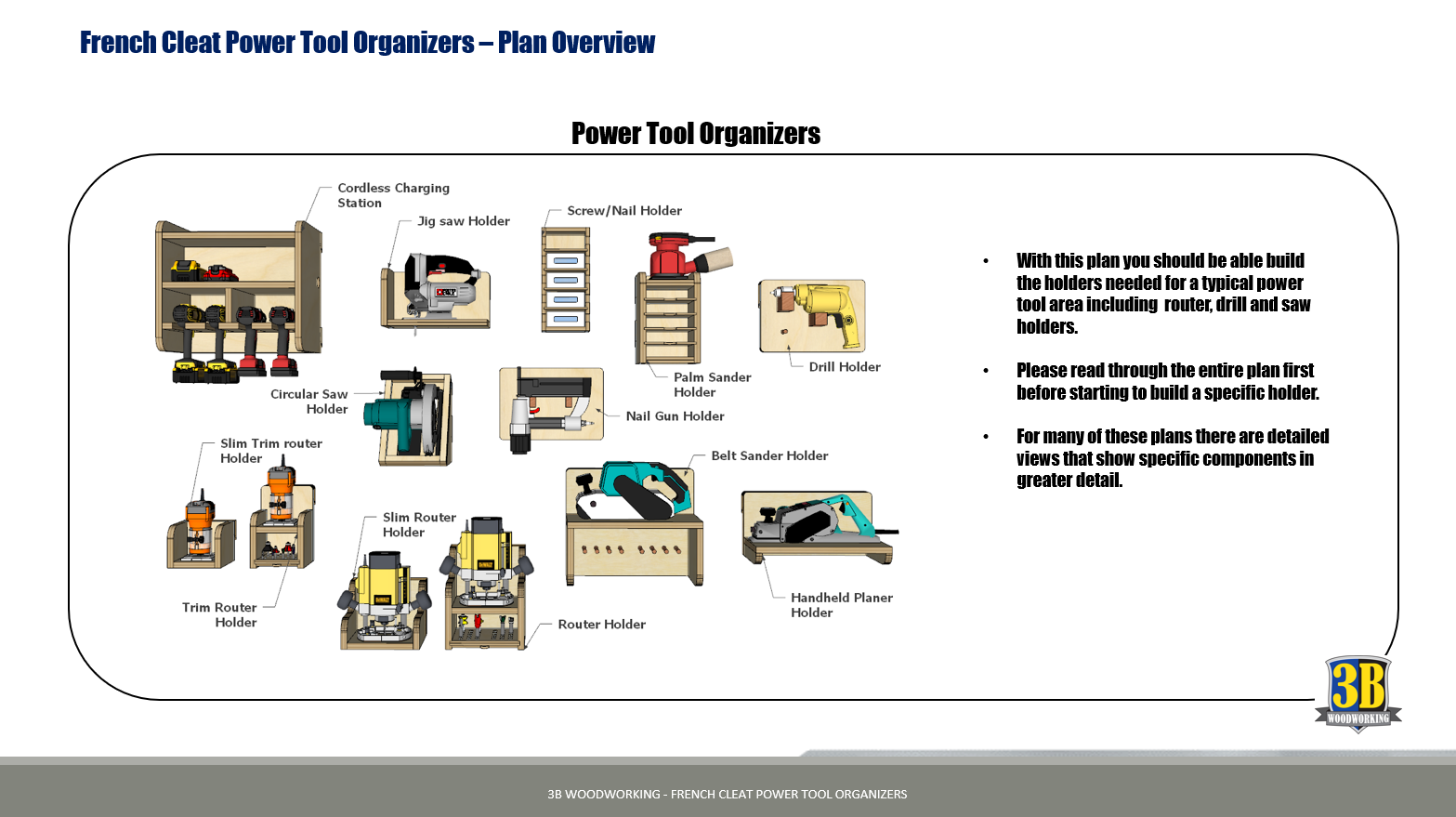 In this build plan I will walk you through building multiple French cleat power tool organizers for your French cleat wall. Includes plans to build a cordless tool charging station, and sandpaper organizer as well as other awesome French cleat organizers. These are the perfect garage storage organizers for all your power tools.