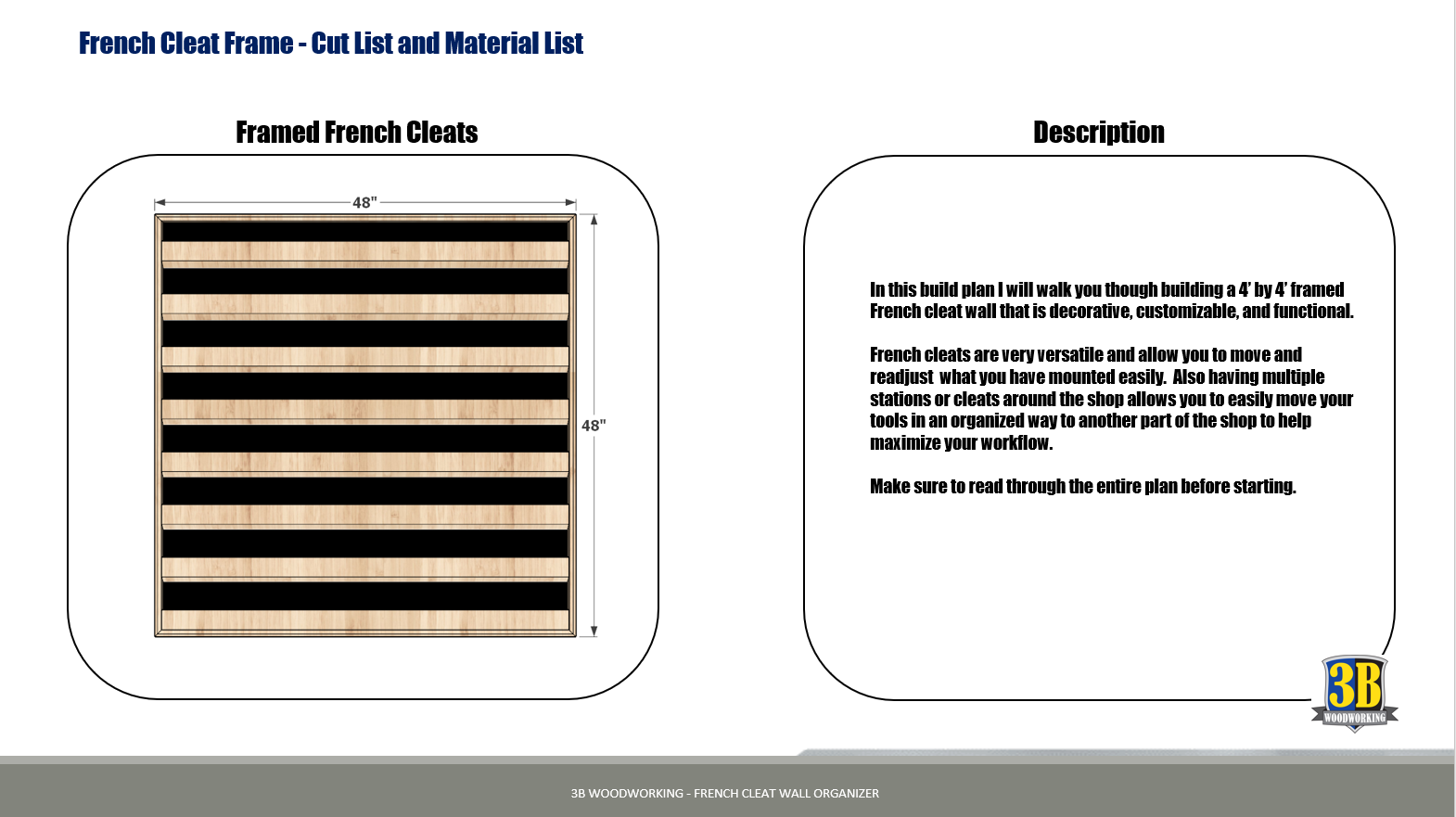 In this build plan I will walk you though building a 4’ by 4’ framed French cleat tool wall that is decorative, customizable, and functional.